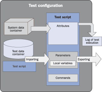 Test configuration — Contains a set of references to test script, a system data container, and test data containers used for running automated tests.
