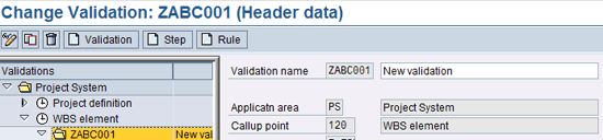 After you create the validation name, the name appears under the WBS element in the left side (Figure 12).