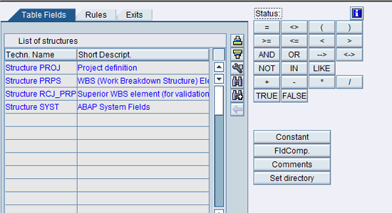 If you intend to select the field name from the table, then instead of writing the code directly as shown in Figure 14,. You can click the table PROJ in Figure 15 and select the field PROFL and again select “=” from the status that is shown in the Figure 15.