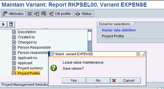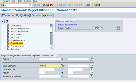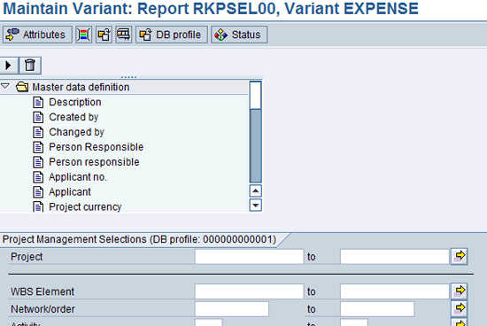 The project profile becomes an influencing field for the field settings. Enter the expense project profile ZABC001 in the Contents field for the project profile (Figure 8).
