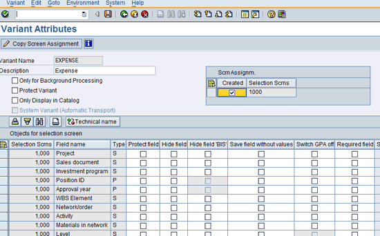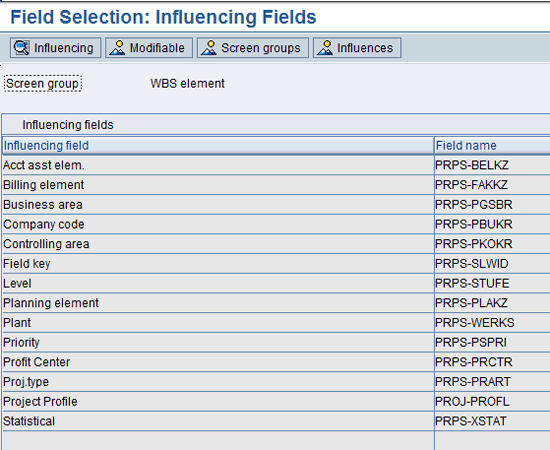 In the Field Selection screen (Figure 6) click the Influencing button to select the expense project profile to which these settings are applicable.