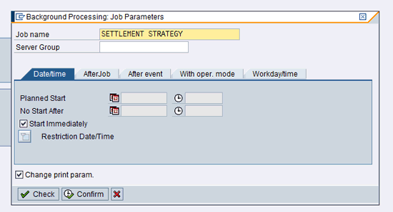 In the Job Parameters screen enter the name of the job (e.g., SETTLEMENT STRATEGY) and select the Start Immediately indicator. Click the Confirm button at the bottom of the screen to set up the job (Figure 31).
