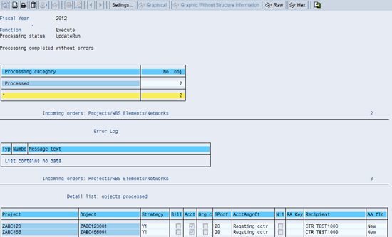 Select the spool number and select the display indicator. The log is displayed. The log shows the number of records processed; errors, if any; and the details of WBS and the settlement rule generated (Figure 36).