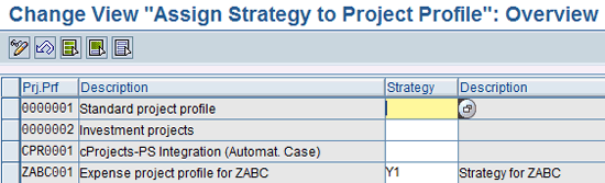 Now assign the settlement strategy to a project profile. Follow IMG menu path Project System > Costs > Automatic and Periodic Allocations > Settlement > Settlement Rule for Work Breakdown Structure Element. Click the execute icon beside Assign Strategy to Project Profile. In my example, I assign settlement strategy Y1 to expense project profile ZABC001 (Figure 4). As I said earlier, the strategy is built on the settlement profile, which in turn is assigned to the project profile.