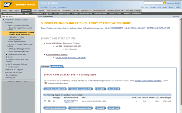 The configuration file is delivered in the form of an application set (appset) to be installed in your SAP BusinessObjects Planning and Consolidation application. An appset is a SQL database that stores all the data from each individual planning or consolidation application in the set. To download the appset, go to the Support Portal of the SAP Service Marketplace and follow menu path https://service.sap.com/support > Download > Support Packages and Patches > Support Packages and Patches by Application Group > SAP Application Components > SAP BPC FOR MICROSOFT > SAP BPC 7.0 FOR MICROSOFT > SAP BPC 7.0 MS START. KIT IFRS > #OS independent (Figure 1).