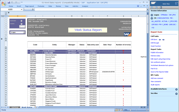 A series of dynamically formatted audit and analysis reports such as breakdown reports, ledgers, and journals allow the analysis of consolidated data. All these reports use the advanced analysis features of SAP BusinessObjects Planning and Consolidation.