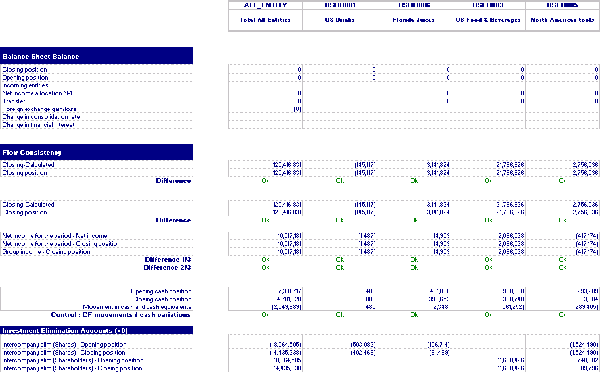 A series of preconfigured control reports contain controls on collected data for validating the data entry step of the consolidation process. These controls primarily check main balances, gross value of asset against depreciation, the analysis by flow, and the disclosure consistency on the operating profit level.