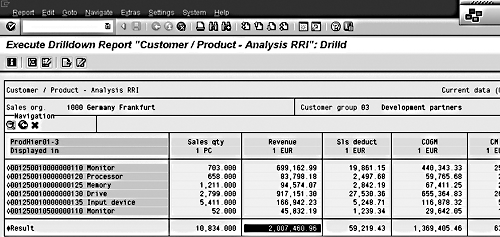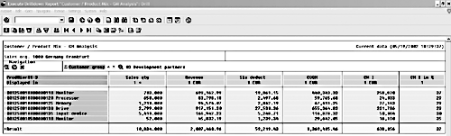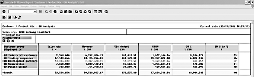 Execute REPORT with transaction code KE30 for the given periods that you want to see in the report, and drill down to Product Hierarchy (for a particular customer group). You should have results similar to those shown in Figure 7.