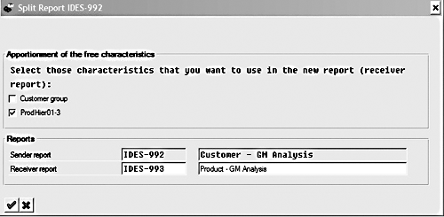 As an alternative to the steps mentioned above in the report/report interface section, R/3 has a feature to split REPORT1 and REPORT2 for you. The split report function splits a CO-PA report into two new reports: a sender report and a receiver report. Each has fewer characteristics.