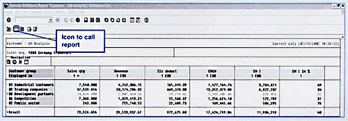 Step 4. Execute the new CO-PA report, REPORT1 (created in step 3). When you drill down to the last level (in this example, customer group is the only drill-down characteristic), you will see an additional icon in the navigation area (Figure 9) that you use to call up the report.