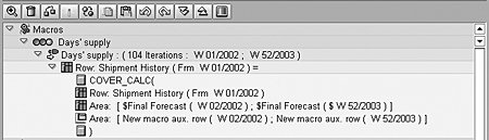APO macros are similar to the macros commonly used in a Microsoft Excel spreadsheet. The primary difference is that macros in the SAP APO demand plan can use real-time data that can be updated interactively from an R/3 application, allowing direct interaction with the optimizers in APO.