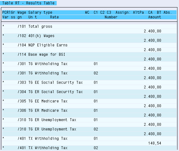 - Verifying payroll configuration settings such as wage type catalogue and attributes, as well as evaluations, and adjusting them accordingly. For example, a huge variance in wage type /401 [tax withholding], may be caused by incorrect attributes on the wage type configuration.