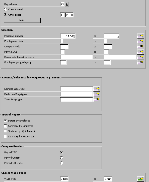 - Use comparison reports to run four options of the report with wage type tolerance limits