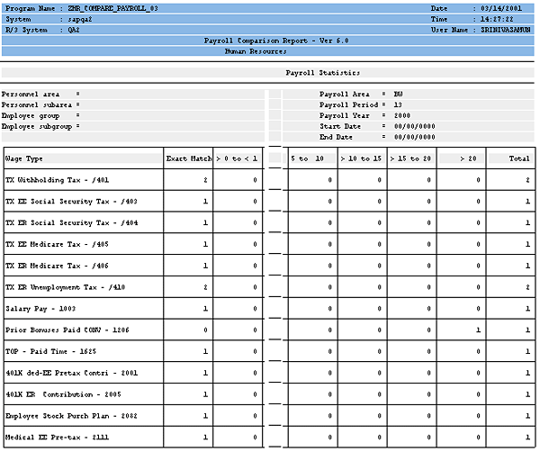 Report Output: Statistics by Variance Amount for Each Wage Type