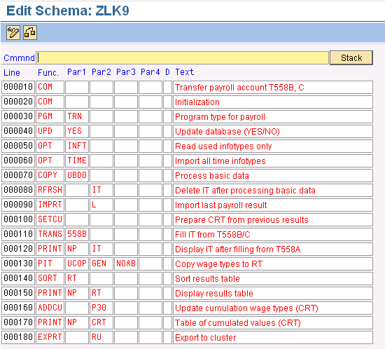 - Running payroll schema ULK9 (or ZLK9) to transfer data from SAP payroll tables into SAP tables and payroll clusters