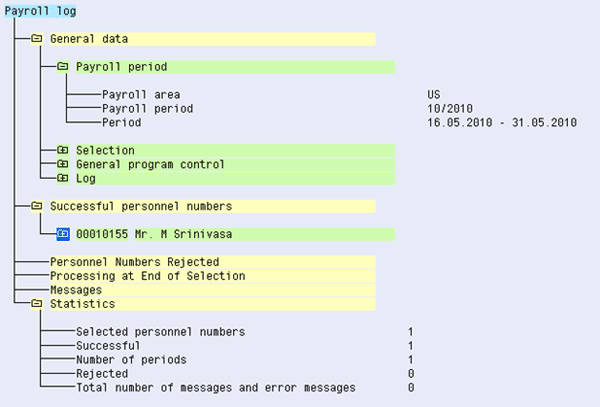 After you execute the report the system generates a log. You have the option to run payroll in test mode. I strongly recommend that you do so before you run the actual payroll run. This test mode report displays the success and error details of your payroll run (Figure 9).