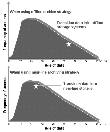 Data should be reviewed for transfer (if not strictly moved) from the primary BW database to an NLS system once its frequency of access has decreased to less than once every month, as Figure 3 shows. In so doing, this means that less data is in the primary BW database, and thus BW data load performance improves, fact table compression becomes quicker and easier, index and aggregate creation is faster, and fewer records have to be read during BEx query execution.