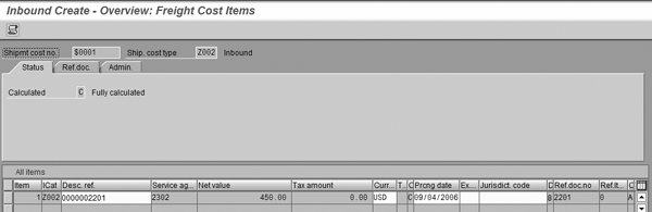creates a single shipment cost line item based on shipment header information, make sure that only the