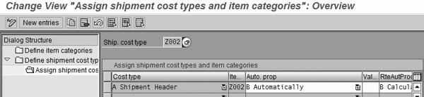 Next, assign the new item category Z002 to the shipment cost type Z002.