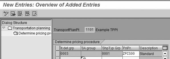 maintained in the shipment type configuration. Enter the pricing procedure as ZFCS00 (Figure 6). Repeat this step for each relevant TPPt.
