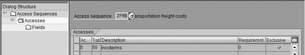 freight vendor, departure, and destination postal codes. If you need to create a custom access sequence, use transaction
