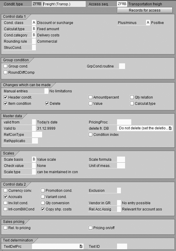 condition type ZFB0 and press Enter. Choose an appropriate condition table, for which you maintain the