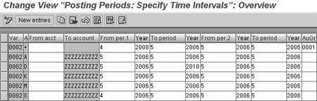 You can enter additional rows for each company code, restricting posting periods for individual sub-ledger account types, such as A (asset), D (customer), or K (vendor). You can further restrict each sub-ledger account in turn by individual general ledger (G/L) accounts.