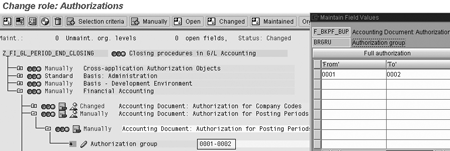 You can generate new authorization profiles after making these changes. Perform a test of your authorization changes and you will be ready to use authorization groups to open and close accounting periods.