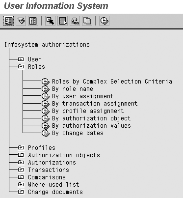 Step 1. Find all roles that contain authorization object F_BKPF_BUP. Go to transaction SU01 and follow menu path Information>Information System. The result is the screen shown in Figure 3. Follow menu path Roles>By authorization object, click on the execute icon, and enter F_BKPF_BUP in the subsequent screen. Click on the execute icon to display a list of roles similar to the example shown in Figure 4.