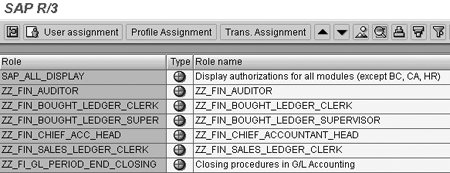 If you cannot find a suitable existing role, the posting period authorization group can be assigned to a new custom role containing only the authorization group. This example concerns the assignment of the authorization group to an existing role Z_FI_GL_PERIOD_END_CLOSING. This existing role is a copy of SAP standard role SAP_FI_GL_PERIOD_END_CLOSING, which was made to keep the SAP standard role for future reference.