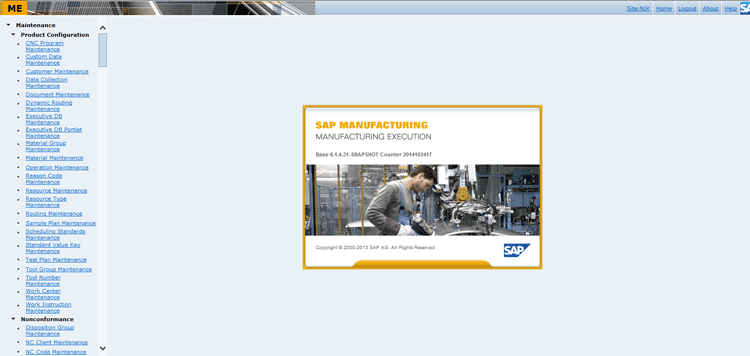 The SAP ME landing page