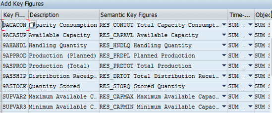 Figure 3 shows different semantic key figures for the Resource Planning consuming application that show the typical APO Capacity Planning Book key figures mapped to the relevant semantic key figures required in a capacity analysis dashboard application.