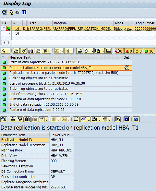 This step transfers planning data from APO liveCache to the created FACT table in HANA database. When the replication is complete, the system displays a log with the number of planning objects (i.e., Characteristic Value Combinations [CVCs] for DP or Product-Location combinations for SNP) for which data from liveCache was replicated (Figure 5).