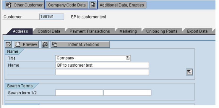 2. Change field values in the BP and see whether the same have been reflected in the customer master data. This ensures that the synchronization happens correctly from BP to customer.