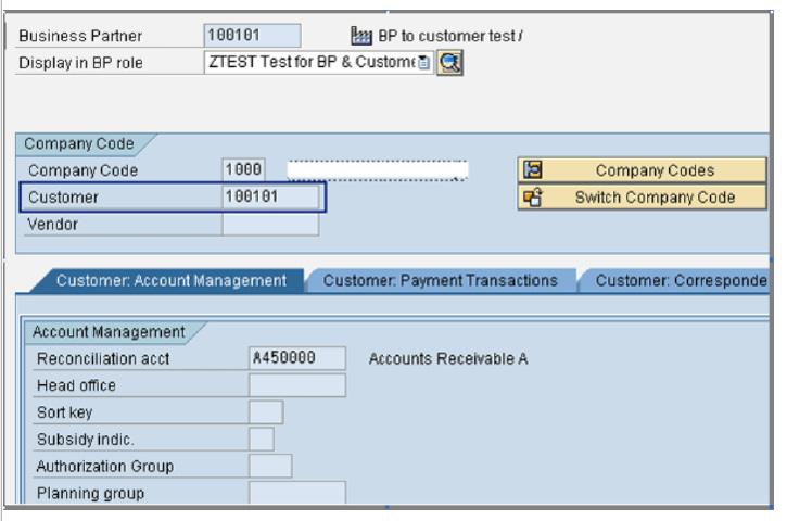 With these settings, after you create the customer the system creates the BP automatically. Go to the Maintain Business Partner screen by using transaction BP and enter 100101 in the Business Partner field (