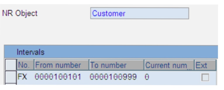 Create the number range interval (FX, in this example) for the customer master