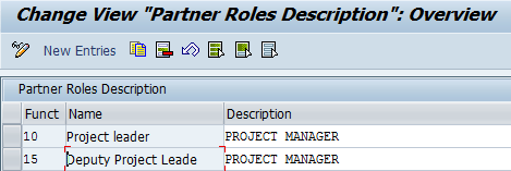 Figure 5 shows an example of a changed partner role description. To add new entries, click the New Entries button.