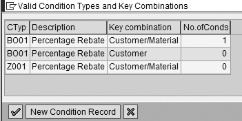 To demonstrate the functionality of SD rebate agreements, I use two condition types. Standard condition type