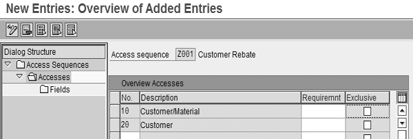 Processing>Condition Technique for Rebate Processing>Maintain Access Sequences (transaction