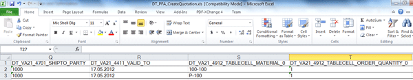 - SAP TAO automatically captures data entered in the business transaction during PFA recording. The data is stored in an SAP TAO-generated Excel file with columns linked to the parameters of the test components (Figure 9). In addition, the data file includes login information (e.g., SAP system, client, user, and encrypted password) for the system under test.