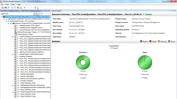 The test script execution generates HP QTP logs that you can view from SAP QC (Figure 15). This screen shows the test log that automatically appears after the execution of the automated test script.
