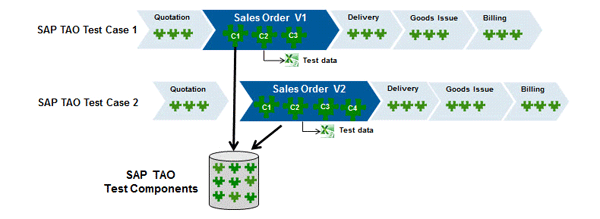 The SAP TAO approach allows users to create automated tests for variants of business processes through the reuse of test components. SAP TAO provides access to a central storage of reusable test components. When the user works with SAP TAO for test case creation or maintenance, the application automatically retrieves the required centrally stored tests components.