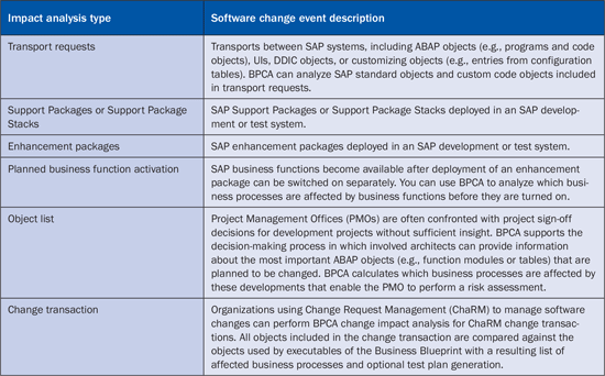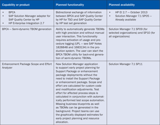 SAP plans to release a number of new features and applications to support advanced change impact analysis of SAP software change events (Table 7).