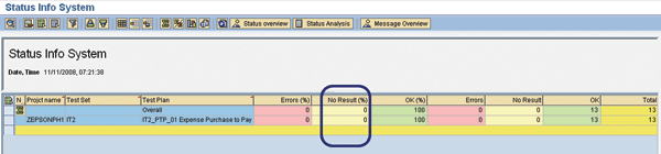 Step 4. Test analysis and monitoring.Solution Manager automatically keeps track of the testing results. You can monitor test results for each test plan or for the entire testing cycle. To display the monitoring of test results for a specific test plan, follow menu path Tools > SAP Solution Manager > Project Analysis > Test > Test Plan Analysis. Solution Manager keeps track of the total number of steps passed or failed, but you have to manually document the test results in the attachment (Figure 14). You need to enter the project, test set, and the test plan, as shown in Figure 15, so you can to review the test status of the test plan.