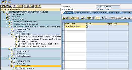 Next, specify the test case variations based on the business requirements (as described in the procure-to-pay example. Follow menu path Business Scenarios > PTP: <process> > Business Processes > Process Requisitions > Create Requisitions, Approve Requisitions. Select Business Process, switch to the Structure tab, and then add the Process Requisitions and any other structures as required (Figure 4).