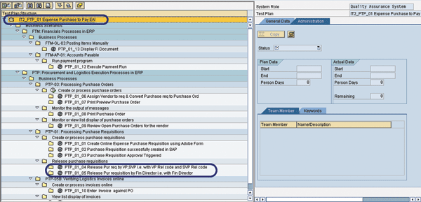 Each block, in turn, has a set of sub blocks. For example, the sub blocks for the test cases in the procure-to-pay process would include: