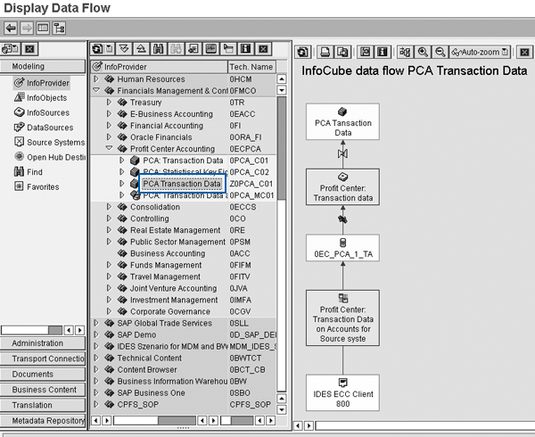 The creation of the Source Data Basis, linking Source Data Basis 71 to the InfoProvider Z0PCA_C01
