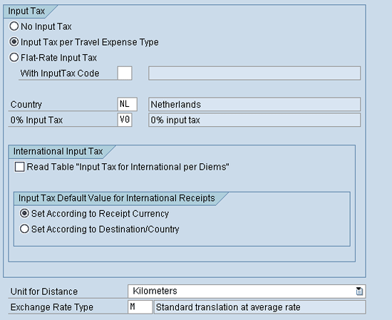 You need to check the settings of the variant as shown in Figure 14. In this example the input tax is determined per expense. Therefore, you also need to check the VAT per expense type.