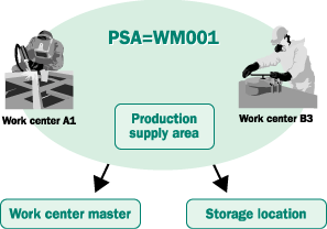 considerations for efficient management of materials within the production areas. The PSAs are linked to work centers and