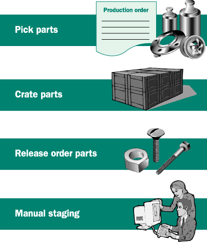 different mixes of pick, crate, and release order parts, depending on the individual requirements. Different staging